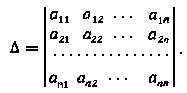 Табличное представление определителя Δ по форме совпадает с матрицей системы уравнений, т.е. состоит из тех же элементов и в том же порядке, что и матрица А. В таких случаях его называют определителем матрицы А и записывают Δ = detA.