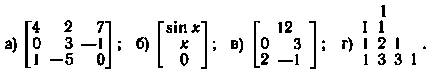 2. Какие из приведенных ниже совокупностей объектов представляют собой матрицы: