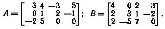 Если матрица (квадратная) совпадает со своей транспонированной, т.е. A = At, то она называется симметричной и ее элементы связаны соотношением aij = aji (симметрия относительно главной диагонали). Матрица, для которой A = -At, называется кососимметричной, и ее элементы связаны соотношением aij = -aji . Она, как и симметричная матрица, всегда квадратная, но диагональные элементы равны нулю, т.е. aii = 0 (i = 1, 2, ..., n). Ниже приведены примеры симметричной и кососимметричной матриц: