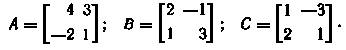 7. Проверить дистрибутивность умножения слева А(В + С) = АВ + АС и справа (А + В)С = АС + ВС относительно сложения для следующих матриц: