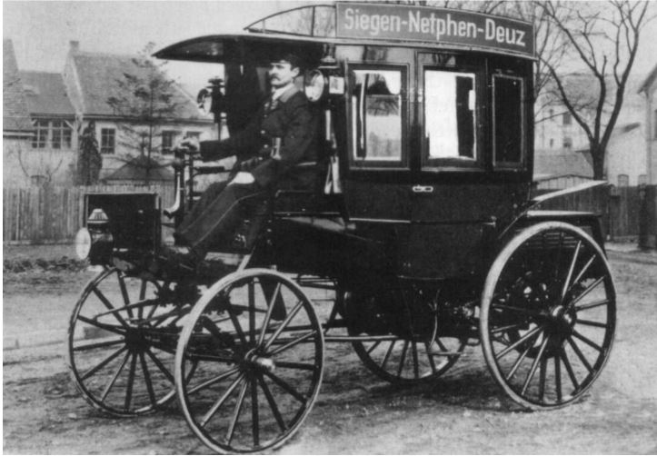 Дошло дело и до общественного транспорта. В 1895 году немецкая фирма «Нетфенер Омнибусгезельшафт» (отметим: название переводится как «Нетфенская омнибусная компания», Нетфен же – это город в Германии) модифицировала грузовичок Карла Бенца и приспособила его для перевозки пассажиров. Первые рейсовые машины начали курсировать в Северном Рейне – Вестфалии по маршруту Зиген – Нетфен – Дойц. Дальность поездки была неслыханной – больше 15 километров, а каждый экипаж вмещал 6 – 8 пассажиров.