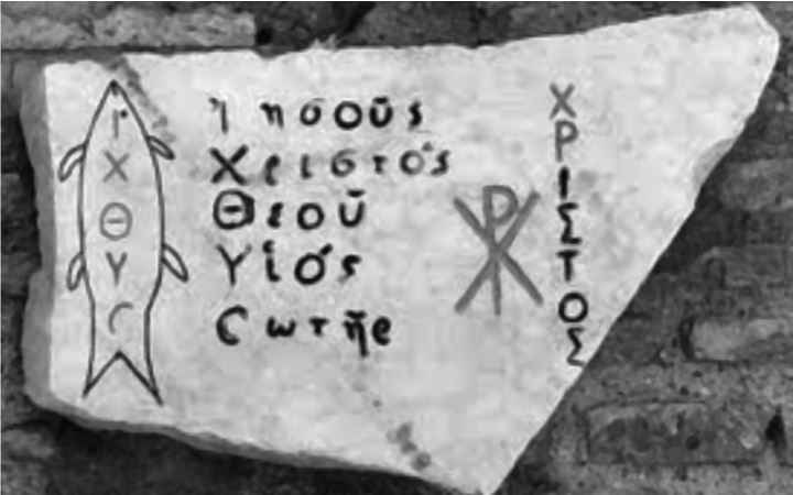 Почему рыба – один из важных религиозных символов христианства? Потому что имя Христа, или даже его титул, по-гречески выглядит так: ΙΧΘΥΣ. Это акроним фразы Ἰησοῦς Χριστὸς Θεοῦ Υἱὸς Σωτήρ, «Йезус Христос Теу Уйос Сотер», что переводится с греческого как «Иисус Христос Божий Сын Спаситель». Но ιχθυσ, «ихтус», – это еще и «рыба» на древнегреческом. Получается, что перед нами все тот же ребус: картинка (рыба), заменяющая целую фразу. Кто мне не верит, может обратиться к трудам Тертуллиана («О крещении») или Августина Блаженного («О граде Божием») – там все это подробно описано. Вот, кстати, каменный фрагмент, относящийся к эпохе раннего христианства, на котором запечатлен ребус с расшифровкой.