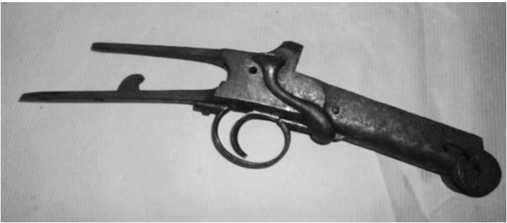 Что такое современный гаджет, всем известно. А вот это «гаджет» старинный. Он же – деталь древнего ружья со спусковым крючком, то есть гашеткой. По-французски: platine gachette fusile, то есть «замок ружья с гашеткой».