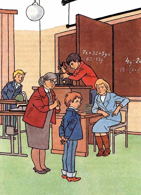 Вот тут-то в класс по-хозяйски вплыла тётя Поля, поправила на голове пёстрый платочек и сердито упёрла руки в бока:
