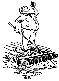 Навстречу им бежал по волнам маленький аккуратный плотик под белым треугольным парусом. Впереди паруса, в креслице, сидел коричневый старичок и, положив ногу на ногу, приветливо помахивал шляпой. В правой руке он держал бамбуковую удочку, на которой висел большой кусок солонины.