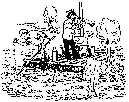 Наконец пар улетучился и на краю плота снова показался Понч, который пробовал из ложки густой рыбный навар.
