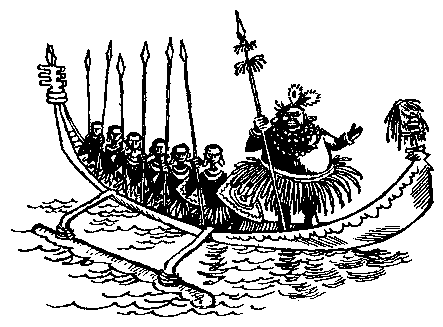 – Да, ты ещё, конечно, очень худой, – покачал головой старый вождь (на этих островах стать вождём тощий человек не мог), – но мы для тебя будем каждый день жарить поросёнка в кокосовых орехах, и ты станешь важным и великим, как я! – И великий вождь, чтобы показать свою мощь, так подпрыгнул, что воины на другом конце пироги, взлетев вверх, едва не сели на копья своих товарищей.