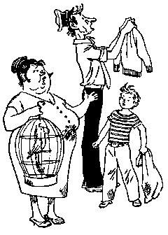 Мужчина в ватнике держал в руках банку с цветными рыбами. Солнышкин хотел было остановиться, но рядом появилась толстая тётка и закричала: