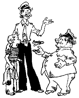 Солнышкин отшатнулся и увидел капитана, который был в два раза выше Робинзона. А фуражка на голове у него была такая, что налезла бы на голову двум капитанам вместе.