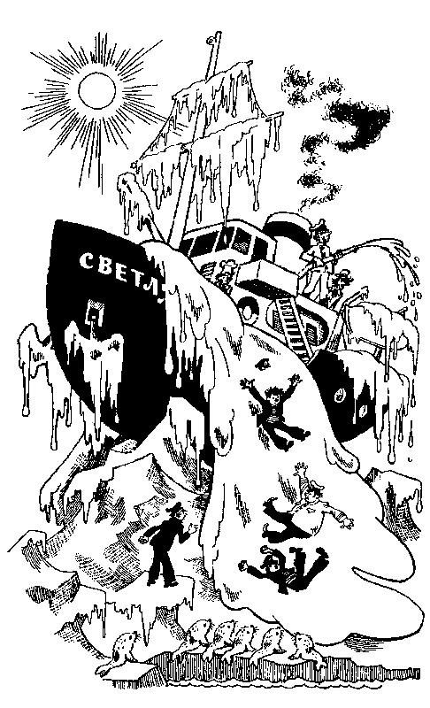 Моряки от удивления вытянули шеи: вместо вчерашнего уютного «Светлячка» перед ними задирало нос обросшее льдами судно. На вантах качался лёд, с мачт свисали сосульки, и влажный ледяной бугор, как осьминог, расползался с рубки по всей палубе.