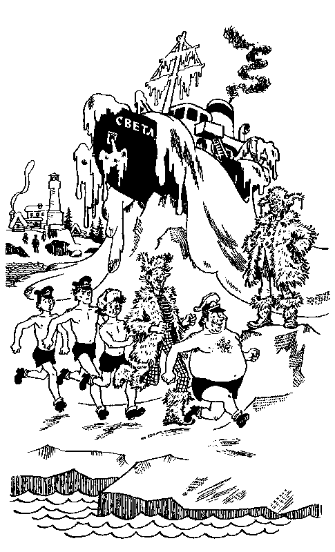 – Чёрт знает, что за кино! Развели собак, сапоги мяукают! – сказал Плавали-Знаем, но, совсем открыв глаза, вспомнил: – Ха! Да у нас зимовка! – и высунул голову в иллюминатор.