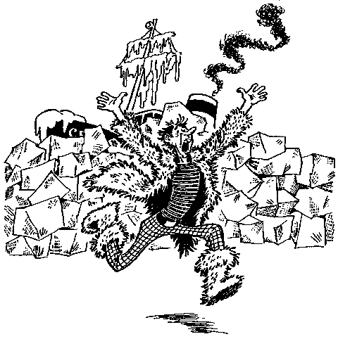 – Ага, вам мало, – сказал Плавали-Знаем. – Тогда получайте! – И он поддел плечом пирамиду снежных шаров.