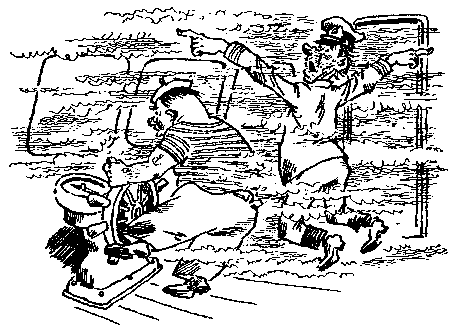 – По местам! По местам! – заорал Плавали-Знаем и в одном сапоге заковылял на капитанский мостик.