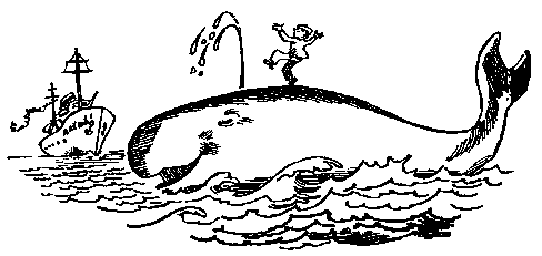 Впереди, навстречу пароходу, важно плыл громадный кит, а на его спине приплясывал живой и невредимый Перчиков!