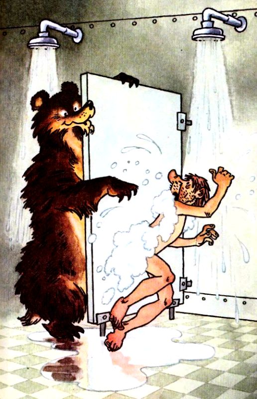 Плавали-Знаем открыл душ, намылил голову, побулькал водой в горле и крикнул соседу: