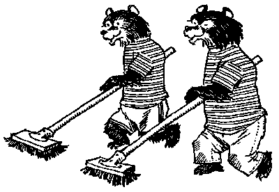 – А что? – воскликнул Солнышкин. – Идея! Вёдра и швабру! – крикнул он и бросился расталкивать медведей. – За дело, ребята, за дело, братцы!