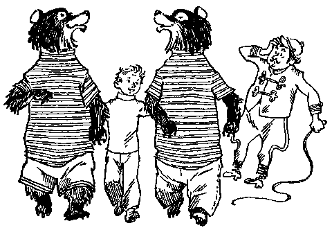 – Боцман, медведи-то цирковые, – сказал Солнышкин. – Мы их и так проведём через весь город. – И в обнимку со своими мохнатыми друзьями он прошёл мимо изумлённого дрессировщика. Потом взял под руку Перчикова, и они двинулись по улице к зданию цирка с полотняным куполом.