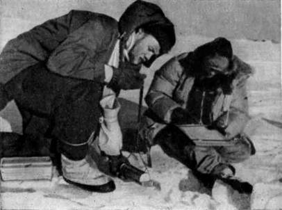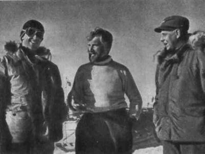 Джон Стивенсон был представителем Австралии. Ему было 26 лет, он только что закончил дипломную работу по геологии в Лондонском университете. Маленького роста, сильный и неутомимый, он вскоре увлекся ездой на собаках и бывал доволен только вблизи гор, постоянно обдумывая способы добраться до новых скал, какими бы недоступными они ни казались. Наконец, Британская нефтяная компания уступила нам на время геофизика Джоффри Пратта, 31 года. Это был высокий, мощного телосложения человек, работавший в Ираке, Папуа, Кувейте и Канаде. Теперь на него возлагались сейсмические исследования и измерения силы тяжести по трассе перехода через континент. Он был способен спать в любое время, и если он засыпал, то разбудить его было невозможно. Тем не менее, когда наставал нужный момент, он всегда был на работе.