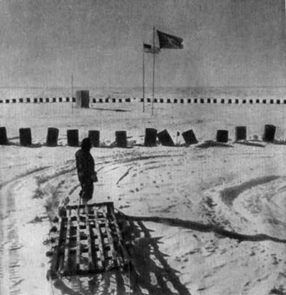 После позднего ужина Кен Блейклок повел меня в обход по базе, чтобы я осмотрел временные склады запасов и общее ее расположение. Ящик от сноу-кэта, где перезимовала партия, теперь был заброшен и по крышу засыпан снегом, но легко было представить себе ужасные условия, в которых они жили.