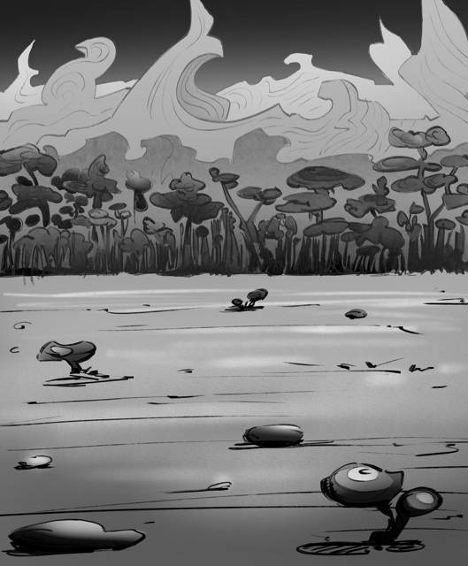 На экране появилась картинка. Пейзаж или, скорее, предварительный набросок.