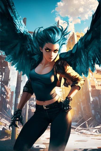 Встретила нас руководительница собственной персоной. Дама поистине экзотической внешности. Совой ее прозвали не зря. В глаза сразу бросались пышные синевато-бирюзовые волосы, в которых проглядывали… настоящие перья! За спиной у женщины виднелись роскошные широкие крылья красивого синего оттенка. Дама держала их сложенными, однако верхняя часть все равно находилась на высоте более двух метров. Наверное, поэтому дверные проемы здесь все были расширены. Модификант любой комплекции и роста спокойно проходил через них.