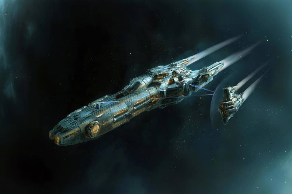 В этот момент на большом экране, на который транслировалось изображение с внешних камер, установленных на корпусе корабля, ярко полыхнуло, и когда вспышка прошла, все трое смогли разглядеть огромный транспортный корабль.