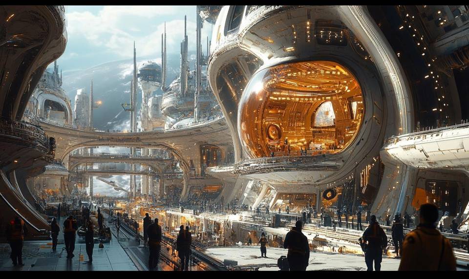Огромные балконы тут и там были закрыты стеклами, внутри находились кафе, магазины, а также посадочные площадки, на которые садились и с которых поднимались корабли – как большие круизные лайнеры, так и маленькие – межсистемные или даже внутрисистемные. Едва только корабли садились, как защитные экраны, на которых светились голограммы с запрещающими и предупреждающими знаками, исчезали, толпа, дожидающаяся тот или иной корабль, тут же рвалась к трапу.