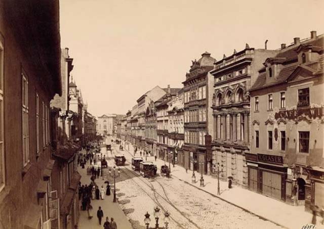 (вот так выглядела улица «На Пршикопе» в начале двадцатого века)