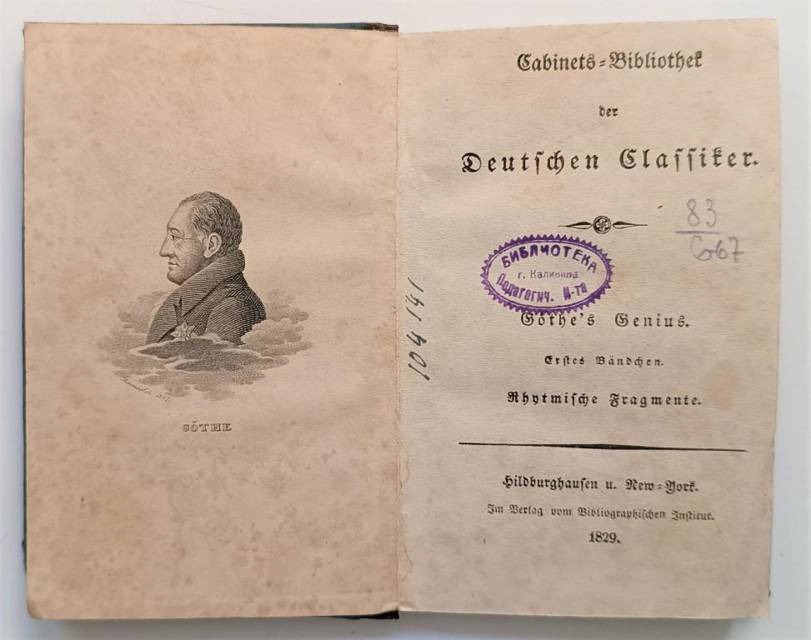 (Тот самый «Гений Гёте» 1829 года издания с портретом автора)