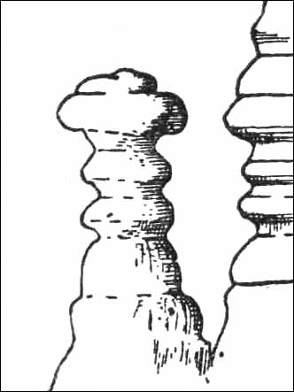 Рис. 46. Столбы выветривания и развевания в красных песчаниках