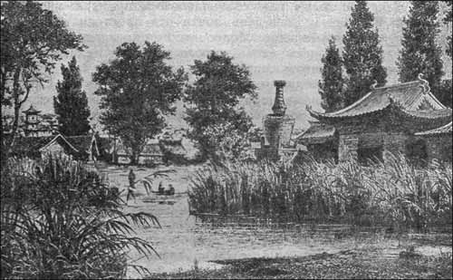 Рис. 53. Пруды, заросли и кумирня внутри г. Ганьчжоу