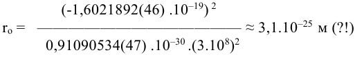 Ну что ж, это все-таки лучше, чем ничего! Автору не понравился знак «я», что означает «примерно», и он, то есть я, подсчитал «классический» радиус электрона в системе СГСЭ. Он получился равным rо = 2,8. 10-13 см.