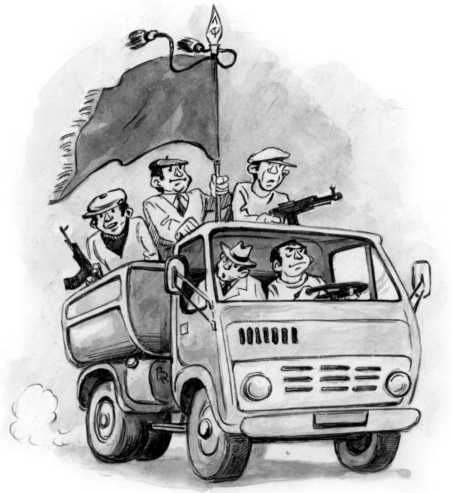 Я оглядел прибывшее воинство. Кроме двух автоматчиков, с которыми я ехал вместе, больше не было видно никого. Потом оказалось, что всего было пять автоматчиков, а в том здании, которое надо было штурмовать, находилось человек четыреста вооруженных омоновцев. Вскоре прибыла пешим ходом остальная часть атакующих, тоже с голыми руками. Организации уже не было никакой. Все разбрелись по «освобожденной территории», не зная, что делать.