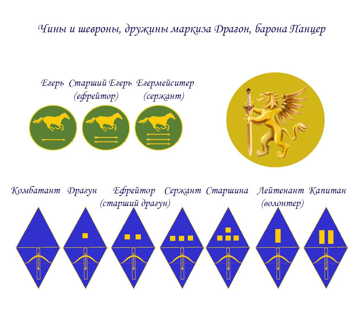 Короче, в результате всего этого, у меня образовалась дружина, из двух драгунских ал и патруля конных егерей, общей численностью сорок семь копий, плюс капитан с лейтенантом, два волонтера, четыре сержанта, девять ефрейторов, старшина и шесть комбатантов. Причем в шевроны и звания, я ввел некоторые мотивы родимой Непобедимой и Легендарной. Комбатанты из хозчасти имели свои нашивки, чем весьма гордились, а волонтеры носили нашивки лейтенантов, чем гордились еще больше.