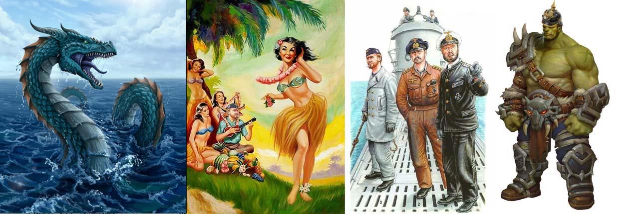 Мы с сержантом просканировали портал, отгоняя подпрыгивающего от нетерпения и любопытства Брыкса, чтобы не мешал. Придя к выводу, что это стандартный портал, я получив из базы данных Ефима код плетения инициализации, принял решение, провести разведку, так как увы эффекта «Слепое зеркало тут не было». Добровольцем назначили напарника Доргха, обвешав его амулетами на все случаи жизни. Надо сказать, что Старый маг, услышав рассказы сержанта об оружии ХХ века, создал мощные амулеты защиты и от огнестрела, любого калибра. Местная защита, как я уже говорил выше, от нашего огнестрела не спасала. Открылся портал, и перед нами предстал зал с готическими сводами, сквозь большие окна под крышей было видно голубое небо, и вполне заурядное солнце (снаружи эти окна видны не были). Гругх смело вошел в зал, походил по нему и вернувшись доложил, что ничего подозрительного не обнаружил, после чего с ним отправились сержант и изнывающий Брыкс, и открыли ворота, за которым открылась панорама тропического леса, заканчивающегося песчаным пляжем, россыпью хижин и океаном до горизонта. На пляже мелькали обнаженные фигуры явно играющие в волейбол, а в гавани стояла на якоре подводная лодка, с флагом кригсмарин. «Кино и немцы» – пробормотал сержант Иванов.