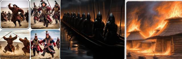 «Великий хан ведя своих воинов в победный бой, из за ошибки своего скакуна, копыто которого Иблис направил в коварную ямку, величественно перенес свое благородное тело из седла на землю (типа упал). А когда на Великого хана набросились три тысячи вооруженных до зубов гяуров он поразил своим клинком две тысячи из них, но пал в неравном бою».