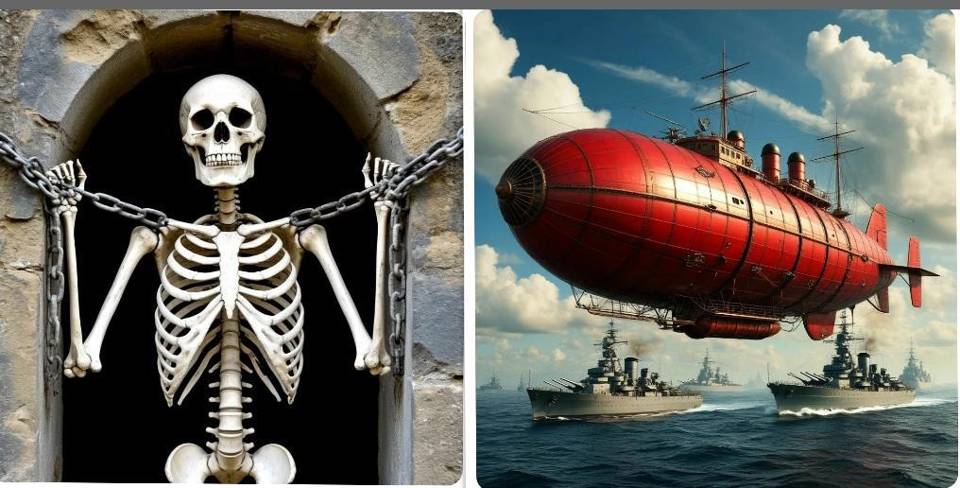 По словам моих специалистов, портал откроется где-то через неделю (плюс минус в течении тридцати – сорока часов), но не раньше чем через шесть дней и я решил осмотреть развалины таинственного, как выяснилось замка. Камеры со скелетами в цепях были за одно и пыточными ибо там ржавели чуть ли не охапки пыточных инструментов (сразу вспомнился дон Сатарина Беспощадный из «Трудно быть Богом»). Скелеты были не только разных размеров, но парочка из них была двухголовыми. Что меня и поразило, и заинтересовало одновременно. Да, интересными делами занимался тут граф Гоат. Ну а Бимсу, который категорически увязался со мной в эту поездку, на острове очень понравилось, и он даже поймал козу. (Мне вспомнилась по ассоциации давняя история из прошлой жизни, когда мои друзья переехали в загородный дом и их мастифф Кайзер, убежав погулять и просочившись за ограду, вернулся с прогулки неся в пасти козу). Из обитателей замка не выжил никто и я вернулся на дирижабль, где стал ожидать открытия портала. Тут как раз подошел Док с «Щукой» и выпустил ее на воду и субмарина отойдя на милю, заняла позиционное положение. А вот Бимс, с самого отъезда вел себя беспокойно, не отходил от меня на долго, поскуливал и лизал руки. Что-то чувствовал псина, да и моя чуйка поскуливала.