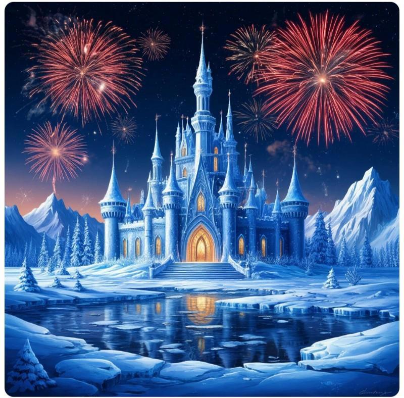 А над дворцом Снежной королевы была локальная ночь вкупе с салютом. Как выяснилось, у Герды был День рождения. Так что мы попали прямо с корабля на бал... Гости были похожи на карнавал сказочных героев. У Снежного королевства оказывается были тесные связи с рядом параллельных миров и монархи оттуда вовсю веселились на балу. Я вспомнил театрализованный капустник в театре Меерхольда, там было нечто похожее.