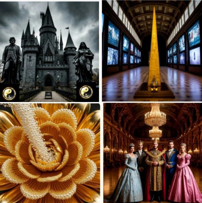А я не сразу это заметил, так как на одной из картин увидел посредине шикарного зала себя в короне и богатой одежде и Ван с Ли в роскошных платьях по бокам от меня и ещё два молодых парня причём один из них тоже в короне. Как сказала потом Ван она потеряла сознание увидев именно эту картину.