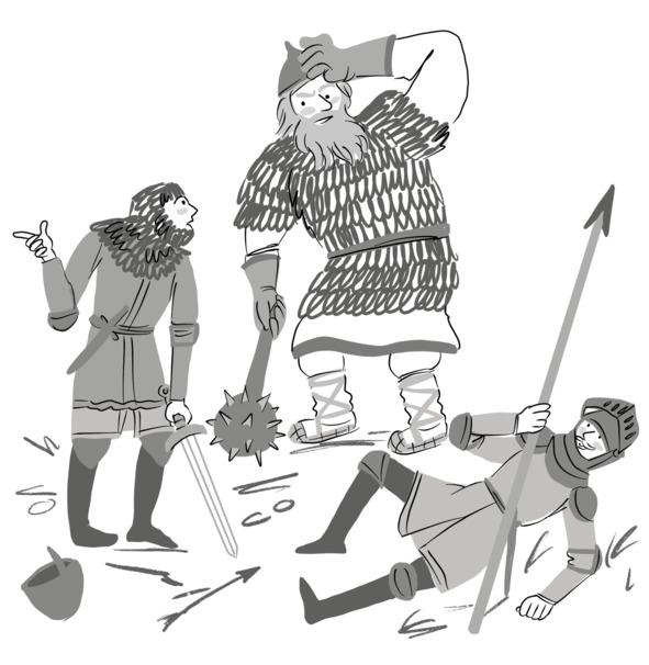 Подошёл Илья Муромец к воротам страшного замка, где Чудище поганое живёт. Хочет он с ним сразиться – а у ворот стража. Не пускают его в замок. Начал Илья Муромец со стражей биться. День бьётся, ночь бьётся… Устали стражники и спрашивают: