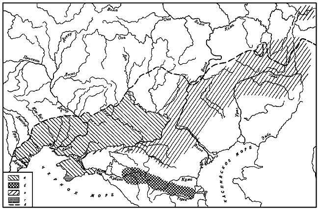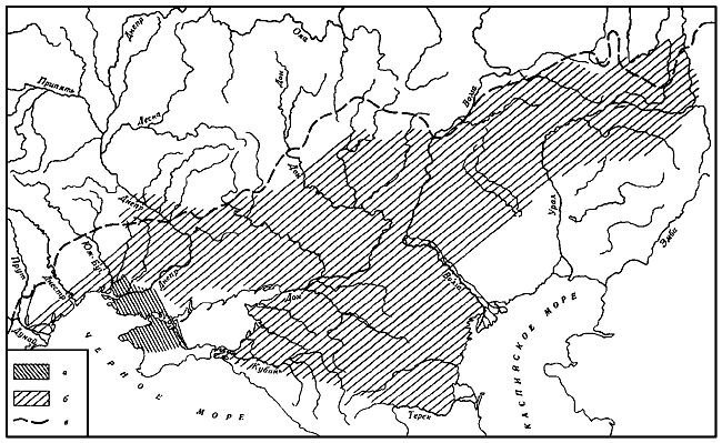 Включение в настоящий том характеристик культур оседлых земледельческо-скотоводческих племен лесостепи Восточной Европы и Кавказа объясняется тем, что эти племена находились в непосредственном взаимодействии с кочевым миром и восприняли от них многие элементы их культуры. Кроме того, в томе получили отражение археологические памятники предшественников скифов в Северном Причерноморье – киммерийцев и их ближайших соседей в лесостепи, а также предшественников савроматов Волго-Донского междуречья, т. е. культуры племен Восточной Европы начала эпохи железа – VIII–VII вв. до н. э. Из этих хронологических рамок несколько выпадает лишь кобанская культура предгорных и горных районов Кавказа, которая оформилась еще в эпоху поздней бронзы и непрерывно развивалась до сарматского времени, постоянно испытывая влияние кочевников. Она вошла в настоящий том целиком, поскольку период поздней бронзы в ней трудно отделить от следующего – предскифского, или киммерийского.