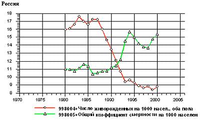 Проведенный с помощью метода исключения анализ показал, что известные социально-экономические и медицинские факторы риска не объясняютприроды сверхсмертности, равно как не объясняют и катастрофического падения рождаемостив России. В 90-х годах люди стали вести более активный образ жизни, больше двигаться, меньше употреблять жирной пищи. За счет падения промышленного производства экологическая обстановка в целом улучшилась. Число абортов сократилось на 40%, рост использования контрацепции был незначительным, несколько выросла младенческая смертность, но затем она вошла в пределы нормы. Коренную причину коллапса ухватить не удается. Существует некий таинственный фактор “X”,который не поддается однозначному научному объяснению.