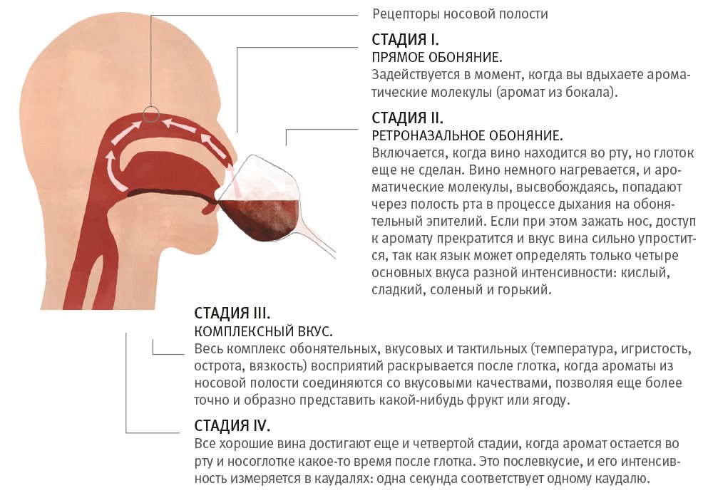 Позже, когда я принимал участие в винном проекте L'Apartament 83, организованном самой крупной и известной в России школой сомелье «Энотрия», я поинтересовался у преподавателя Юлии, что, с ее профессиональной точки зрения, дает больше ощущений от вина: вкус или запах. Оказалось, на долю аромата приходится 70–80 % и только 20–30 % – на долю вкуса. Похожую информацию я встречал и у британского винного эксперта мирового уровня Дженсис Робинсон, и у других авторов.