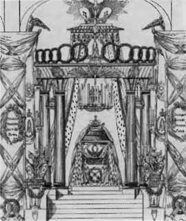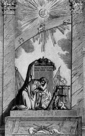 Катафалк, воздвигнутый в новгородском соборе для поставления тела императора Александра I. С рисунка, помещенного в издании графа Аракчеева «Церемониал к встрече и сопровождению в Новгороде тела в Бозе почивающего императора Александра I-го». СПб., 1826 г.