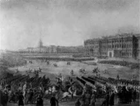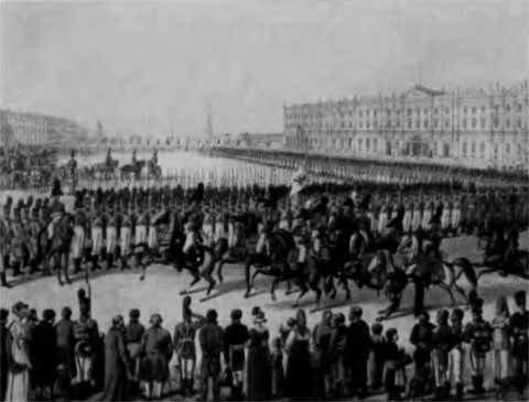 Смотр гвардейских частей на Дворцовой площади. 1820-е гг.