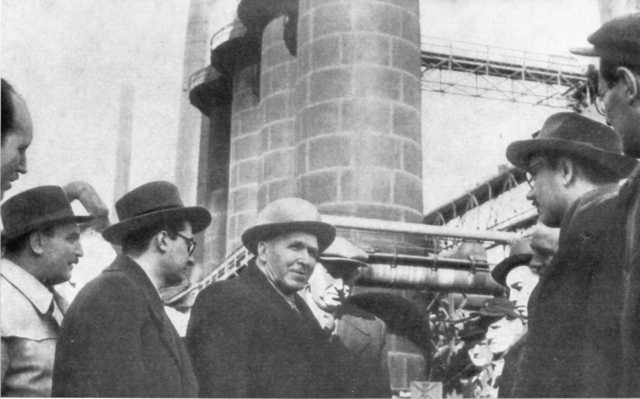 Академик Бардин на Руставском металлургическом заводе (1947 г.).
