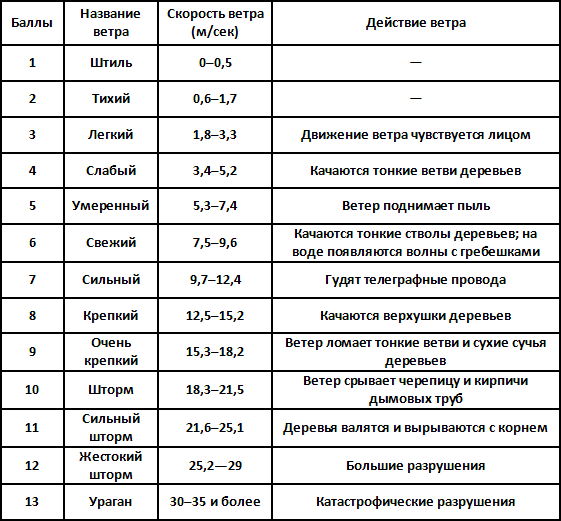 О том, какова сила урагана, можно судить по шкале ветров: