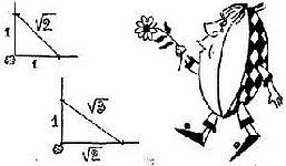 – Верно, – кивнул Олег. – И всё же некоторые иррациональные числа можно легко построить с помощью линейки и циркуля. Вот хоть все квадратные корни из целых чисел, например корень квадратный из двух.