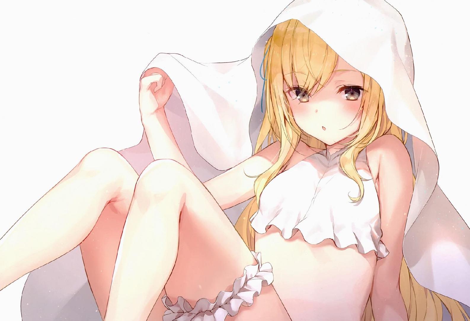 Она обернулась в синее большое полотенце на манер платья. Выглядит даже более прилично, чем шорты и майка. В руках вещи и смартфон.