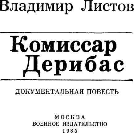Новая книга Владимира Листова «Комиссар Дерибас» написана на документальной основе и повествует о жизни и деятельности одного из видных чекистов – соратнике Феликса Эдмундовича Дзержинского Терентии Дмитриевиче Дерибасе.